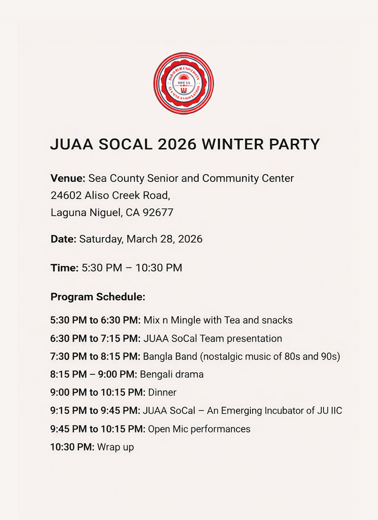 JUAA SoCal 2026 Winter Party by Jadavpur University Alumni Association SoCal.